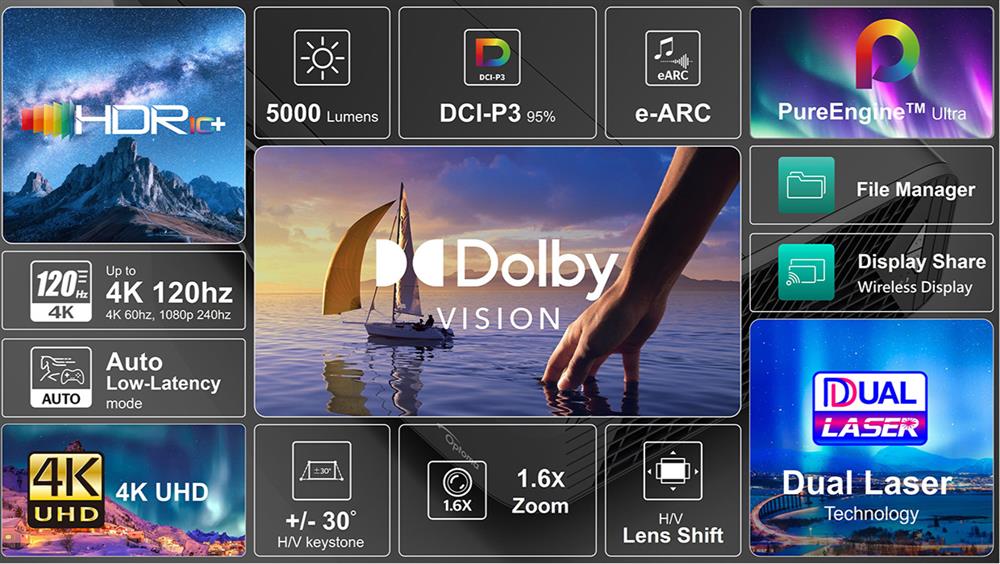 The advanced Dual Laser Technology ensures vibrant visuals with up to 95% DCI-P3 color accuracy, making every frame lifelike and immersive. Combined with PureEngine™ Ultra processing, the projector intelligently enhances brightness, contrast, and motion for a superior viewing experience.